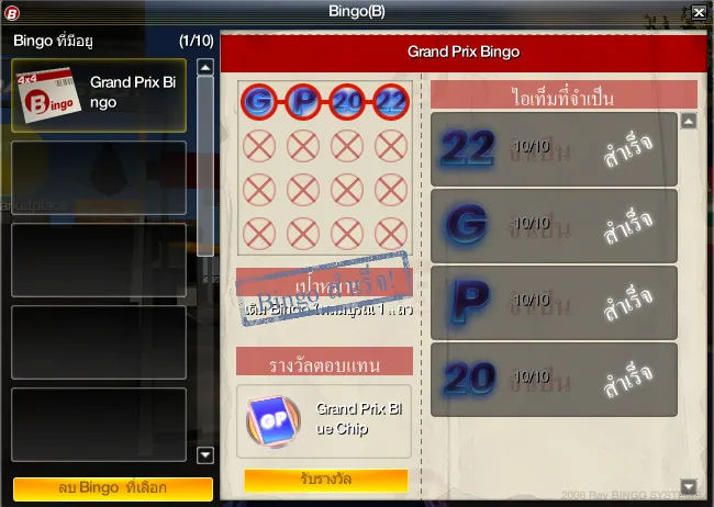 3.หลังจากบิงโกสำเร็จ จะได้รับไอเทม [Grand Prix Blue Chip] หรือ [Grand Prix Red Chip]