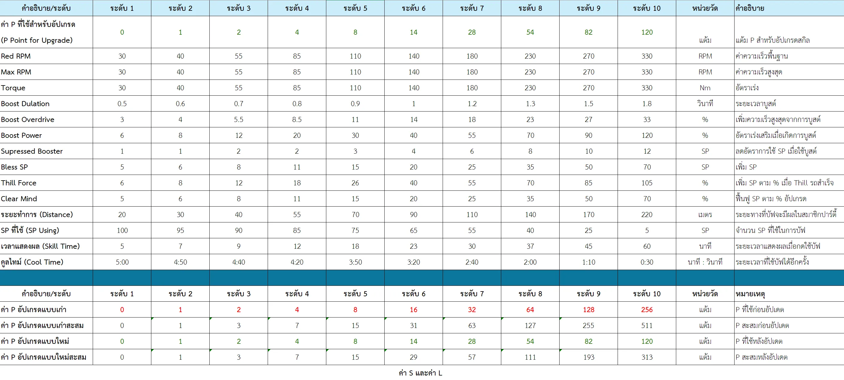 5.10 Reset Car Skill (Car Buff) by using the new system, player will receive the same amount of S and P old system.