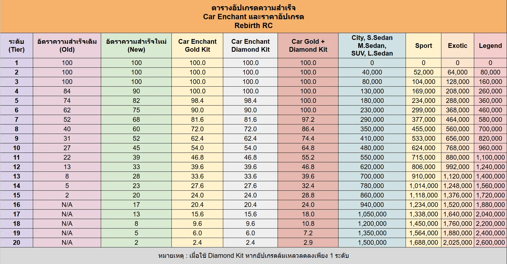 Note: When using Diamond Kit If the upgrade failed, it will reduce to 1 step.