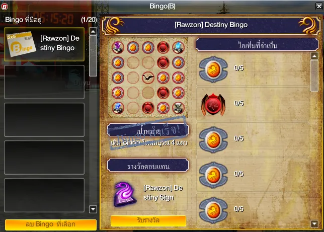 Another requirement is [Legend] Phoenix Lamp and jewelry, when complete the bingo driver will received [Rawzon] Destiny Sign which when driver double click the item, it will begin the car quest.