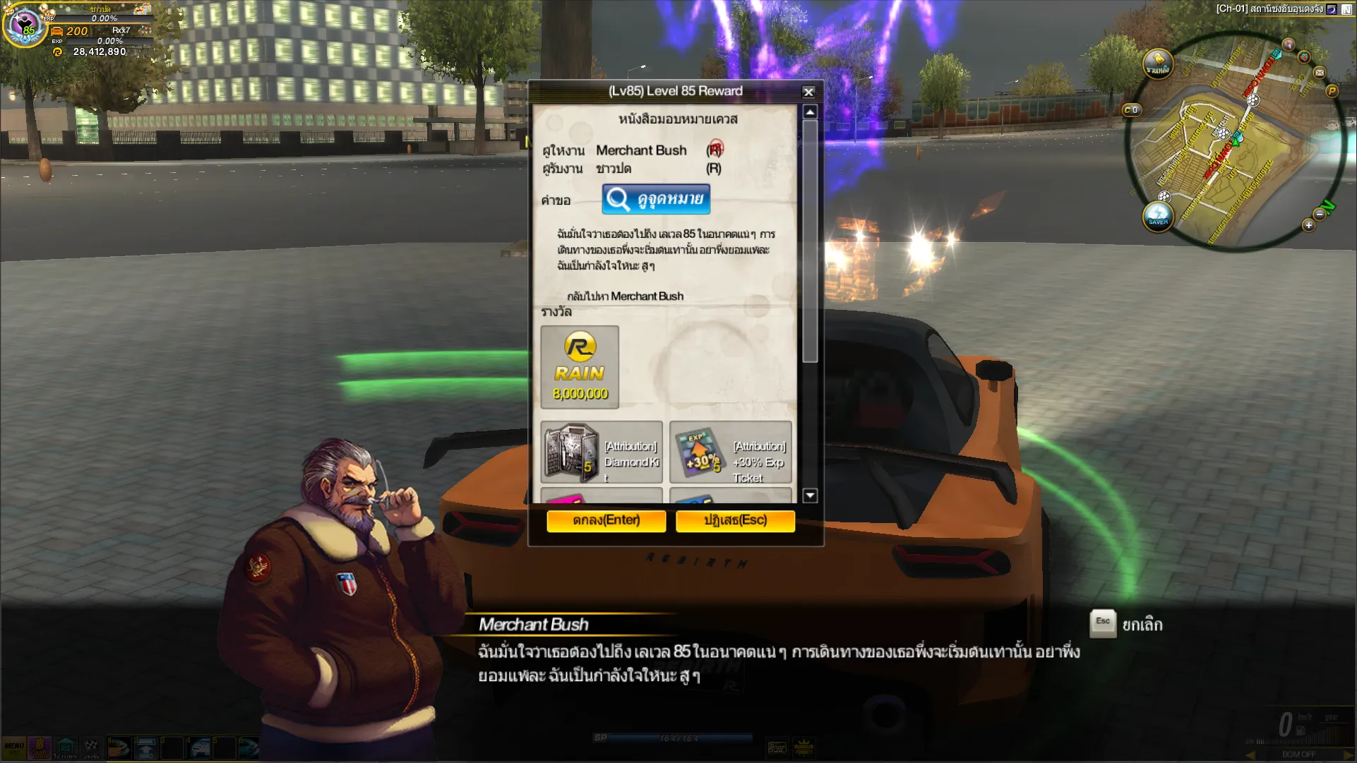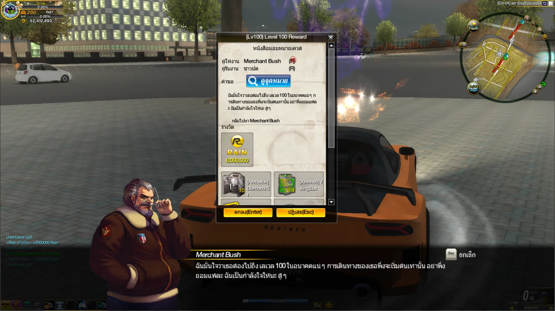 3.8 Lv.100 - Level 100 Reward can be accept at NPC: Merchant Bush and Driver Level 100.