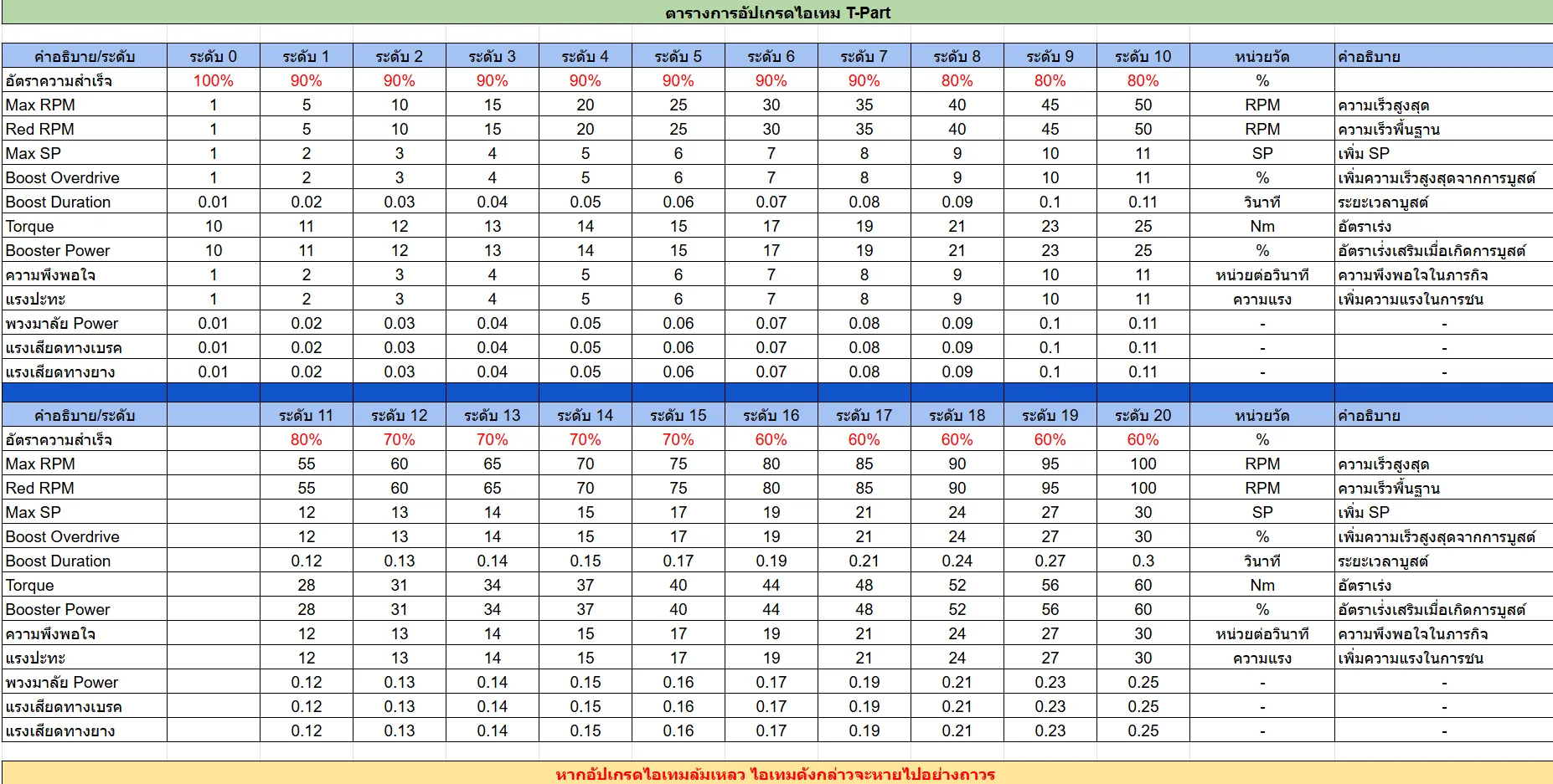- T-Part Rare Tuning Kit: Upgrade for Rare options,