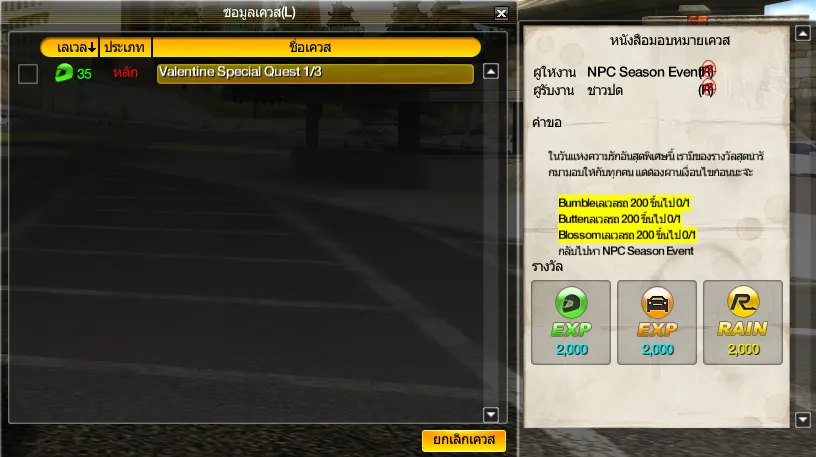 This quest can be accept at NPC Season Event when Driver Level more than 35