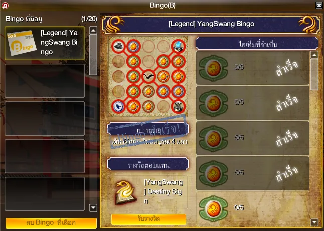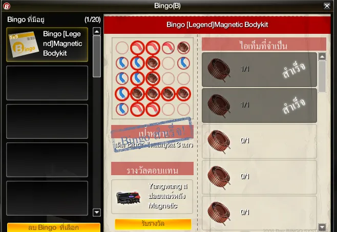 โดยเมื่อทำบิงโกสำเร็จ จะได้รับไอเท็มสำหรับเริ่มเควสซื้อรถ [Legend] YangSwang