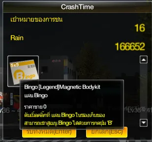 ใบบิงโก Bingo [Legend]Magnetic Bodykit สามารถหาได้จากภารกิจ Crash Time Easy