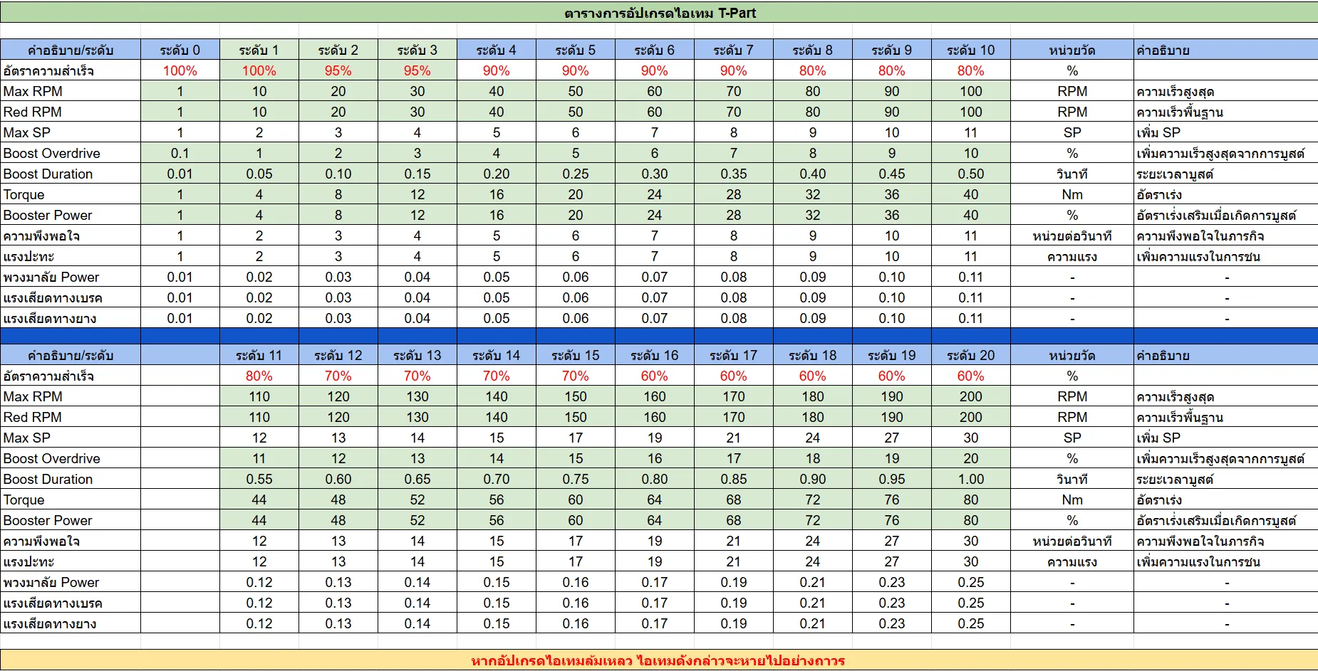 4.1 แก้ไขอัตราสำเร็จของการตีบวกไอเทม T-Part และปรับสมดุลออฟชั่นใหม่ ดังนี้