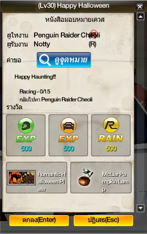 เงื่อนไข เลเวลคนขับชั้นต่ำ 30 ขึ้นไป รับได้ที่ NPC Penguin Raider Cheoil [Town มหาวิทยาลัยฮันยาง]
